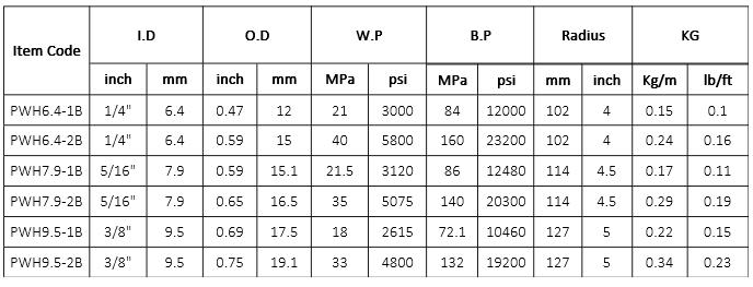 Reinforcement: 1 or 2 high tensile steel wire braiding.